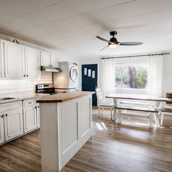 Kitchen: Fully equipped kitchen with everything you need to prepare meals, including a coffee maker and dining area.